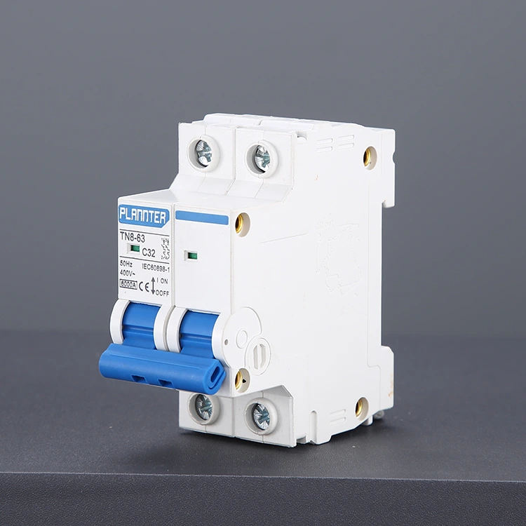 2-полюсен пластмасов миниатюрен прекъсвач се използва широко във фабрични разпределителни табла, контролни панели и захранващи системи на работилници
